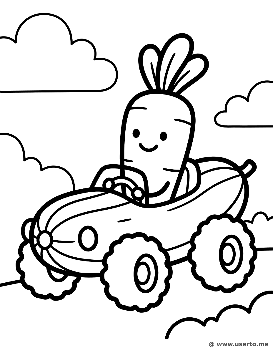 Das Gemüse-Rennauto - Kostenloses AI Coloring Book: To Me