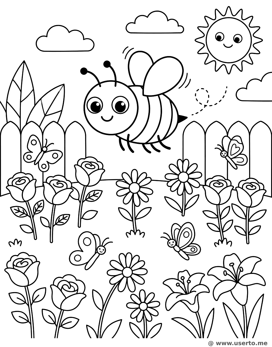 Der Blumengarten der fleißigen Biene - Kostenloses AI Coloring Book: To Me