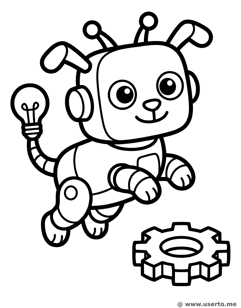 descriptionDer große Sprung des Roboter-Welpen Coloring Page Description
