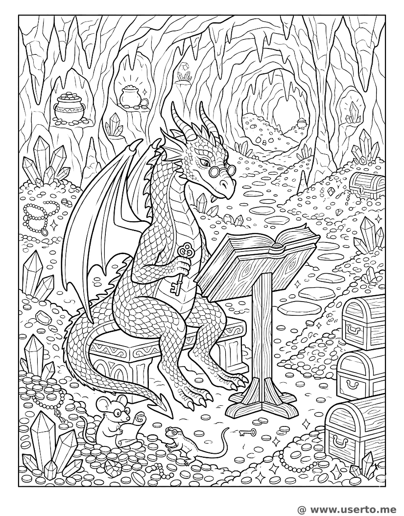 Die geheime Bibliothek des weisen Drachen - Kostenloses AI Coloring Book: To Me