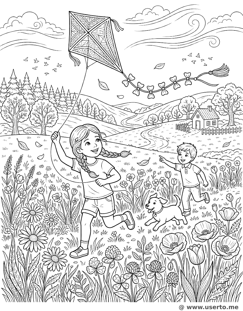 Drachenabenteuer an einem windigen Tag - Kostenloses AI Coloring Book: To Me