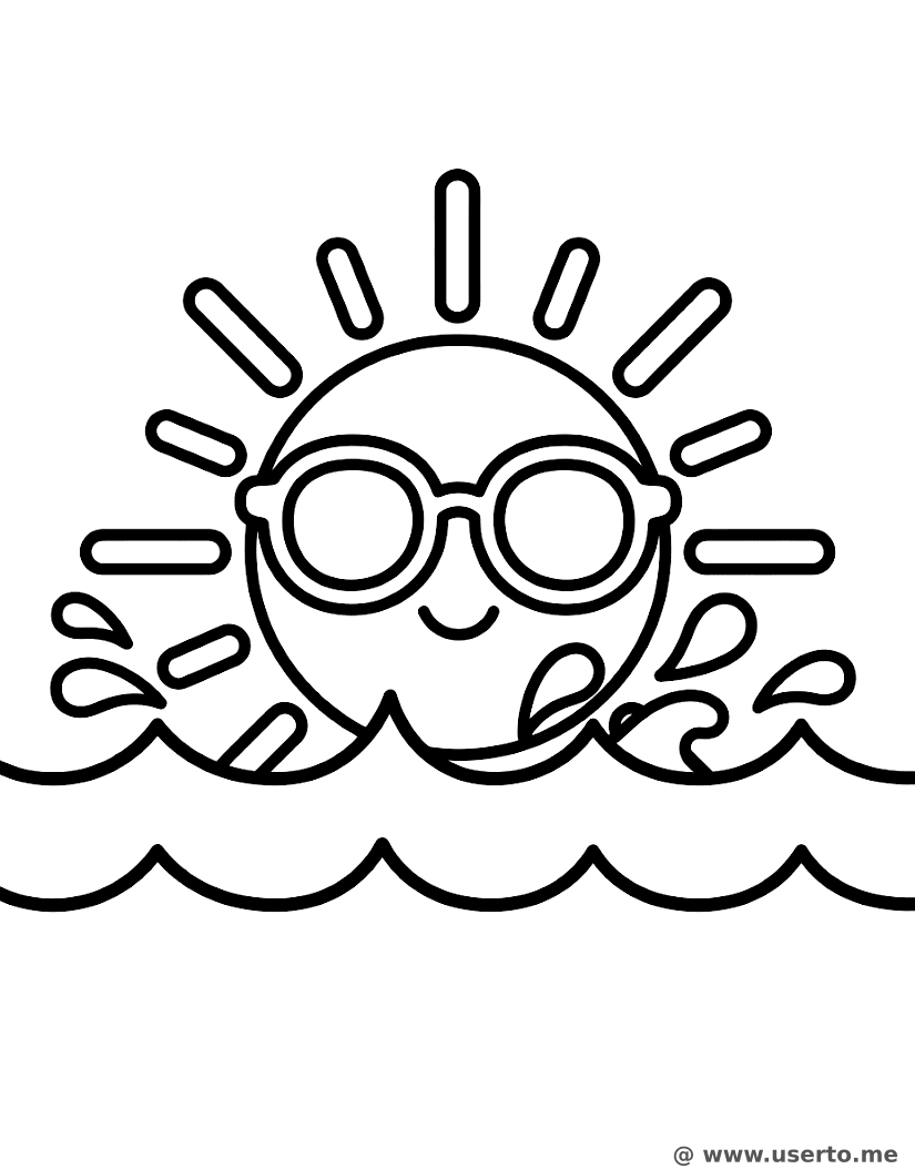 descriptionFröhliche Sonne platscht in Wellen Coloring Page Description