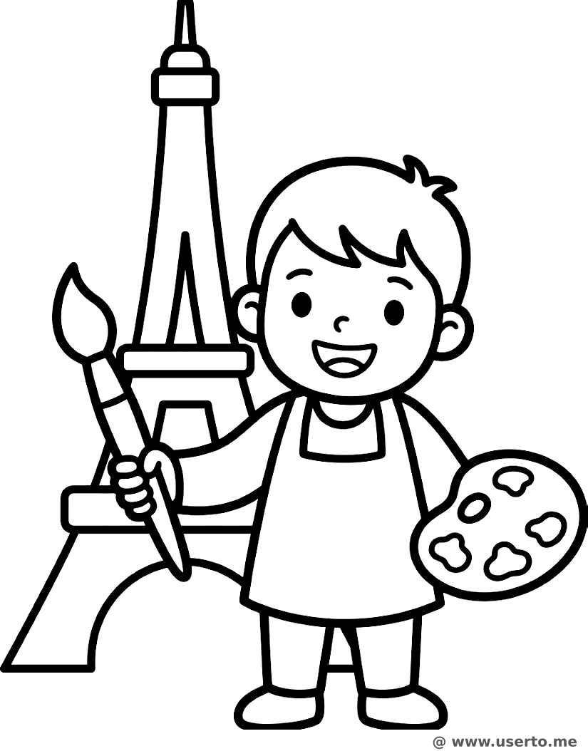 Fröhlicher Maler am Eiffelturm - Kostenloses AI Coloring Book: To Me