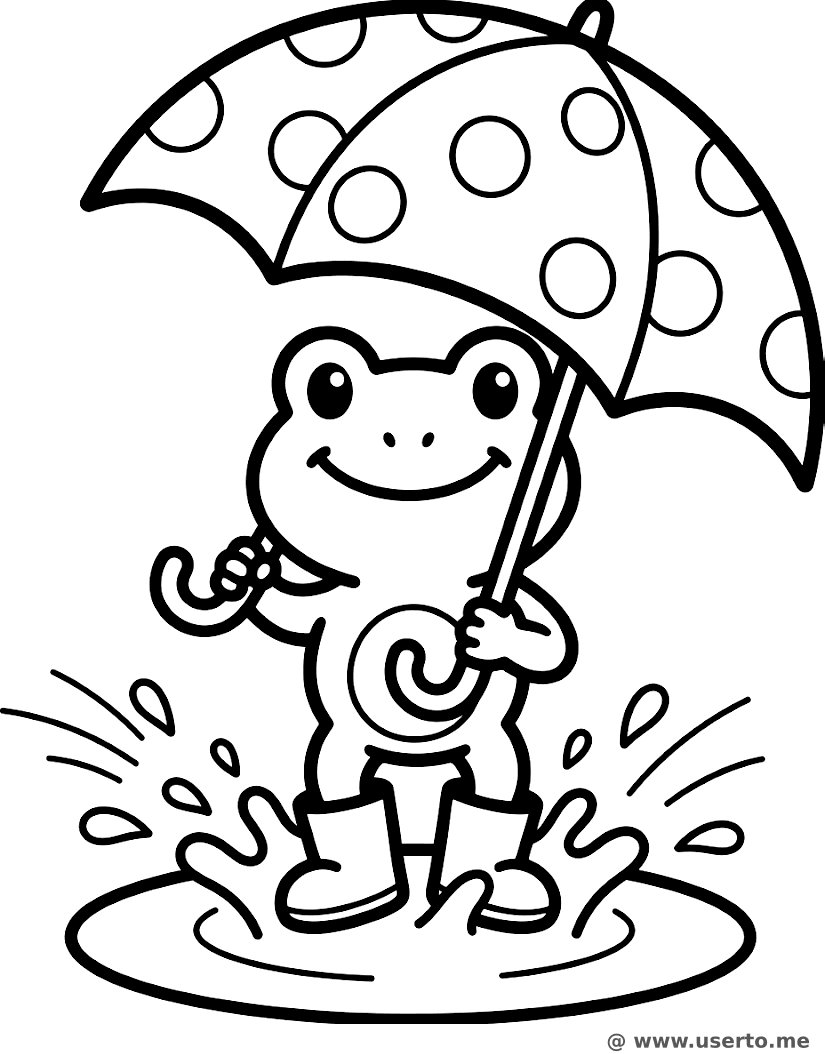 Glücklicher Frosch im Regen - Kostenloses AI Coloring Book: To Me