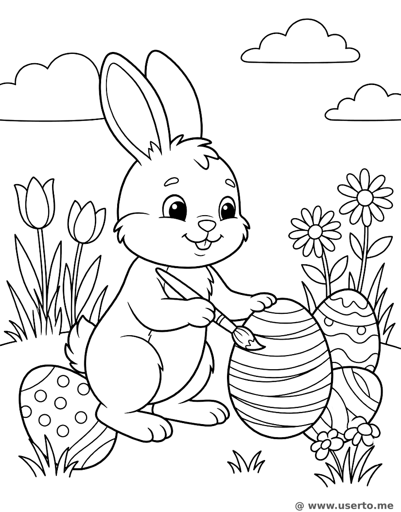 Häschen beim Ostereier-Dekorieren - Kostenloses AI Coloring Book: To Me