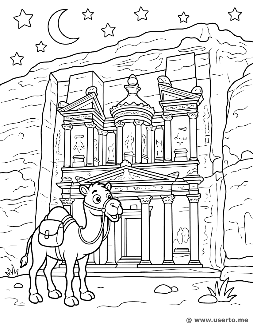 Kamel-Entdecker in Petra - Kostenloses AI Coloring Book: To Me
