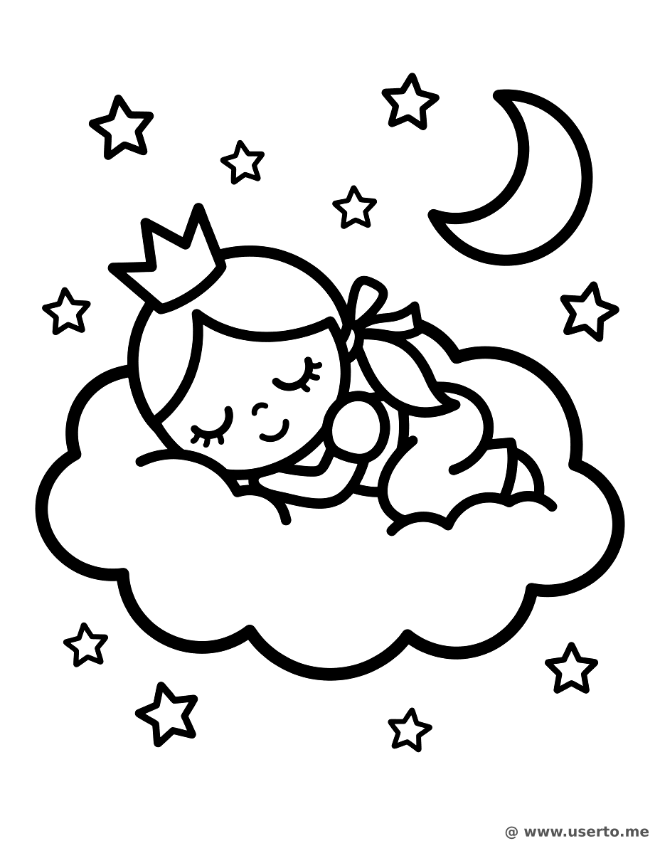 descriptionKleine Prinzessin schläft auf einer Wolke Coloring Page Description