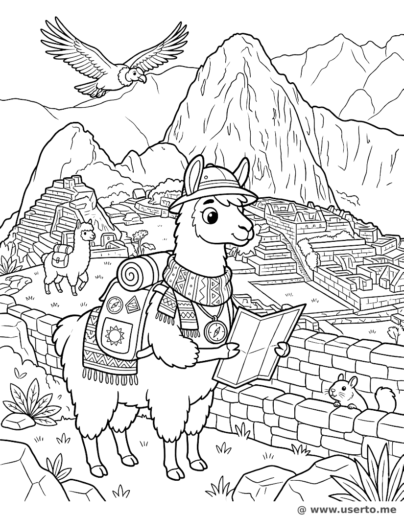 Lama-Entdecker in Machu Picchu - Kostenloses AI Coloring Book: To Me