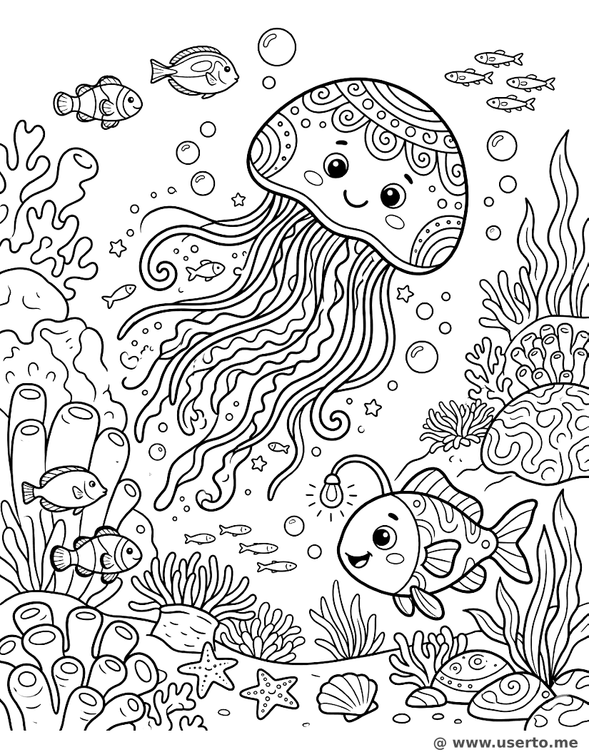 Leuchtparty in der Tiefsee - Kostenloses AI Coloring Book: To Me