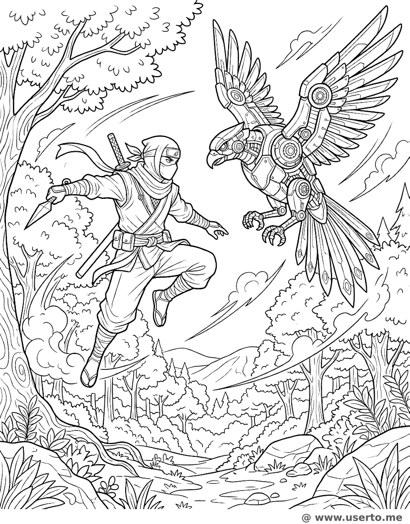 Luftkampf des Ninjas - Kostenloses AI Coloring Book: To Me