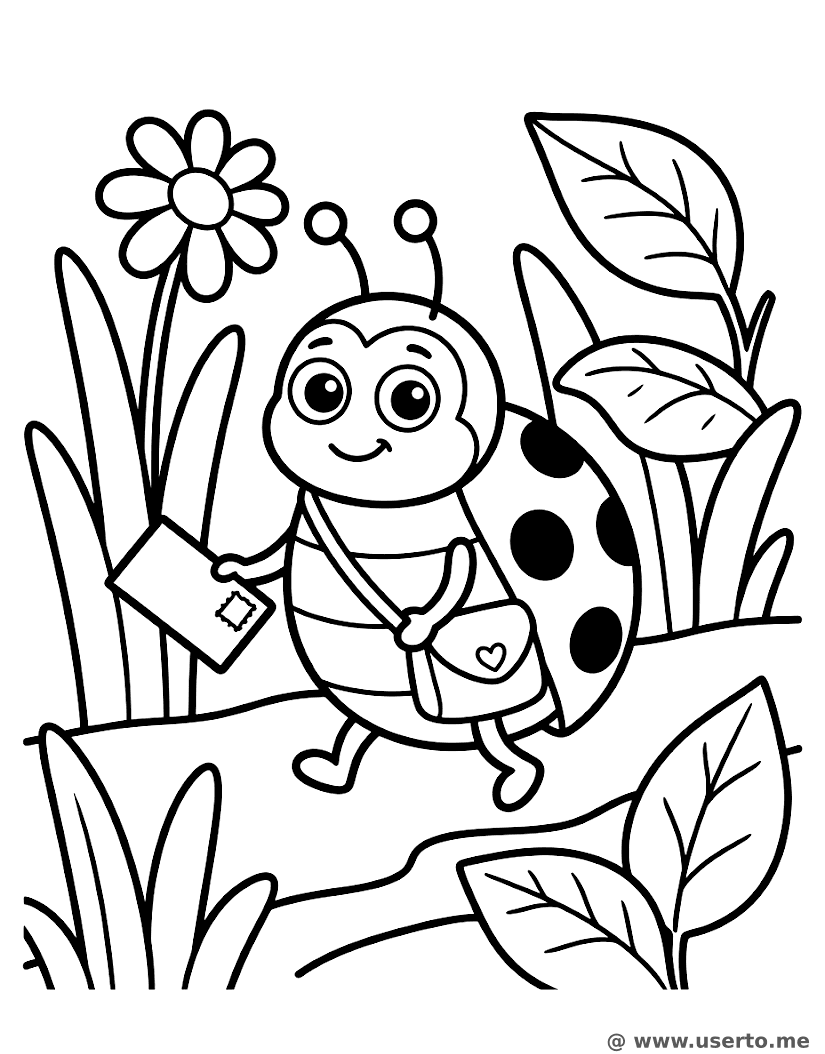 Marienkäfers besondere Lieferung - Kostenloses AI Coloring Book: To Me