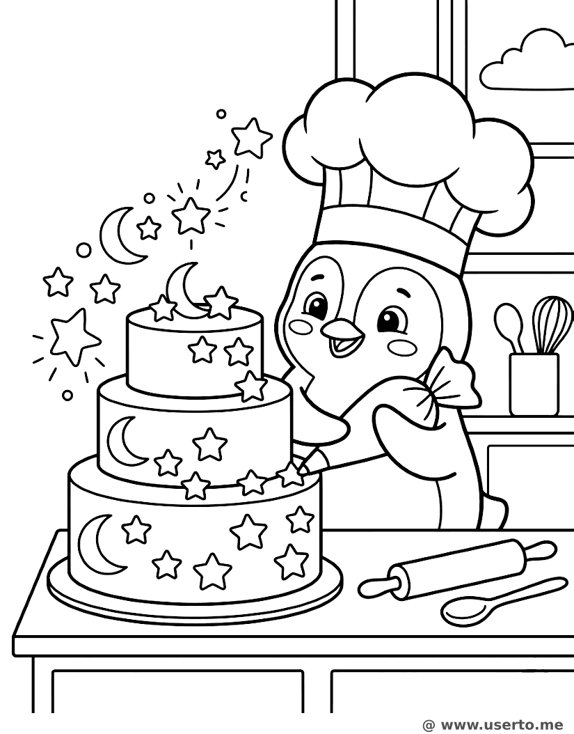 Pinguins Sternen-Kuchen - Kostenloses AI Coloring Book: To Me