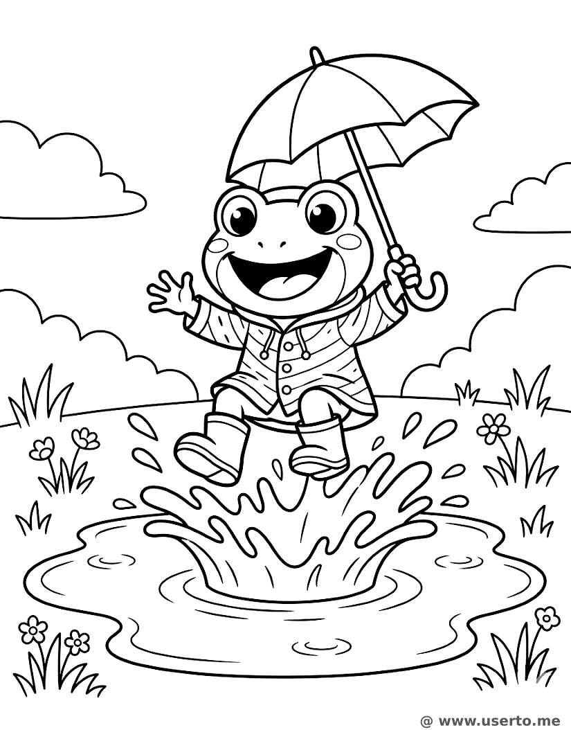 descriptionRegentag-Pfützensprung Coloring Page Description