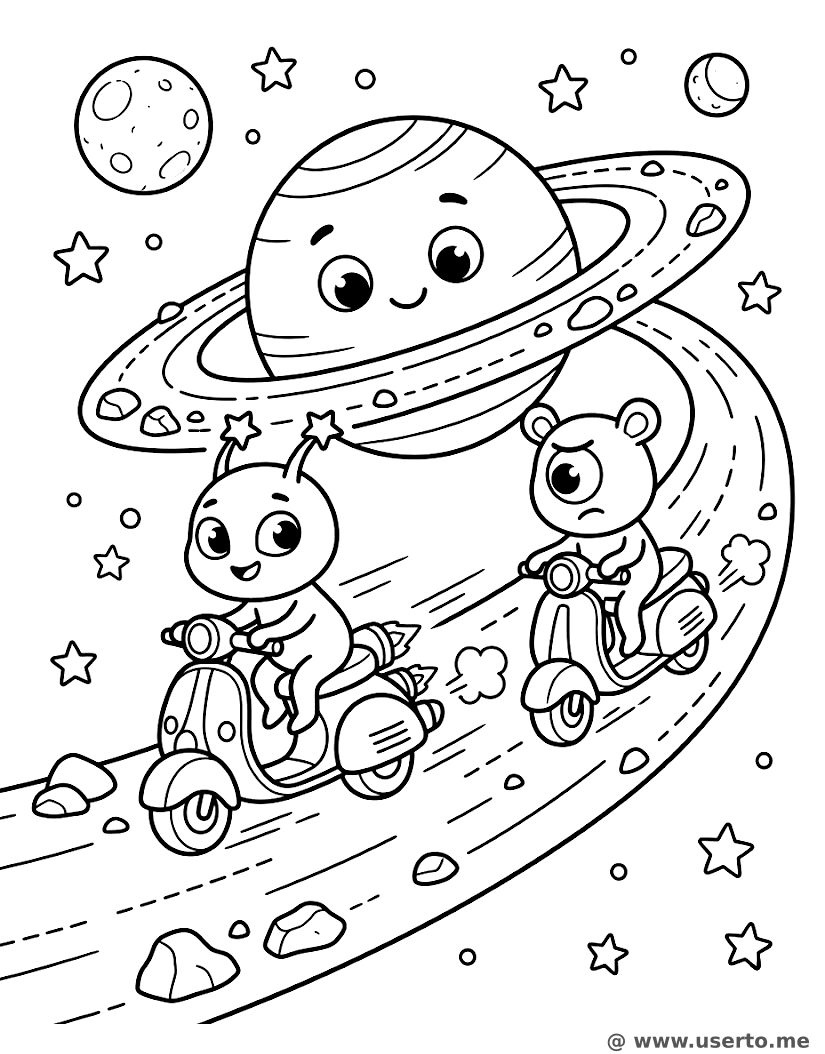 Rollerrennen durch die galaktischen Ringe - Kostenloses AI Coloring Book: To Me