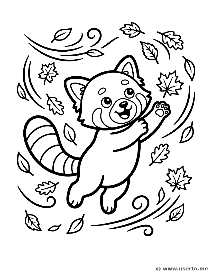 Roter Panda auf Blätterjagd - Kostenloses AI Coloring Book: To Me