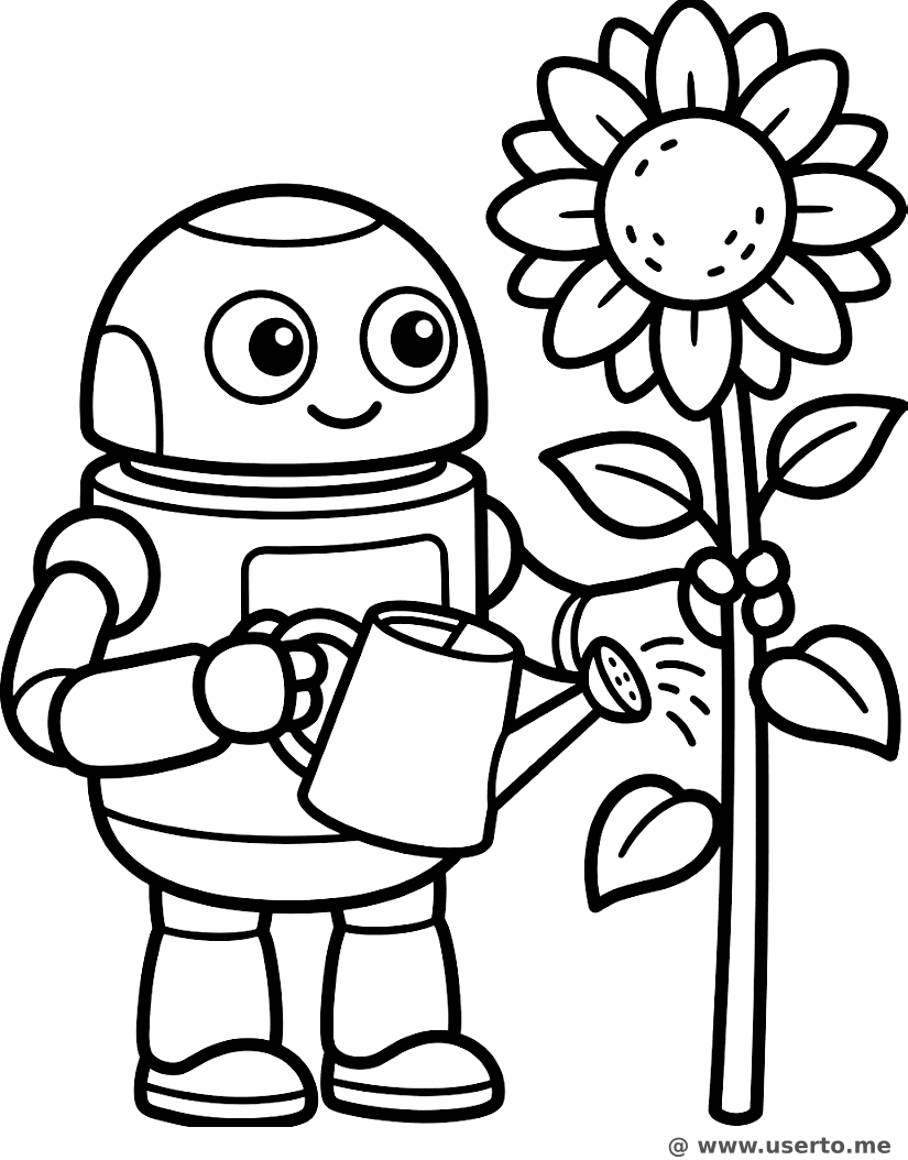 Rusty, der Roboter-Gärtner - Kostenloses AI Coloring Book: To Me