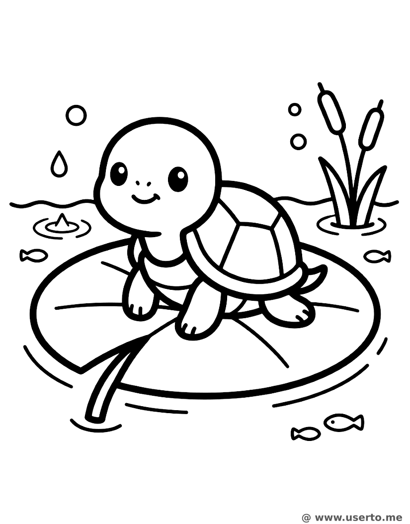Schildkrötenbaby auf einem schwimmenden Blatt - Kostenloses AI Coloring Book: To Me