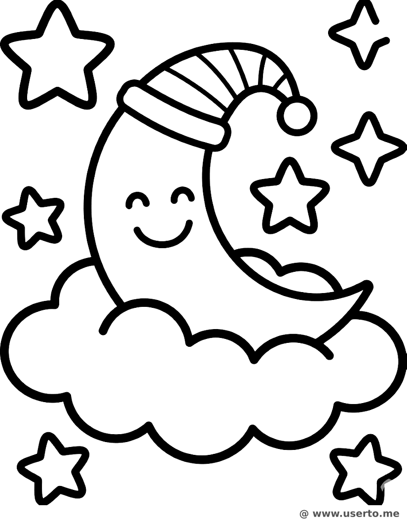 Schläfriger Mond mit Schlafmütze - Kostenloses AI Coloring Book: To Me