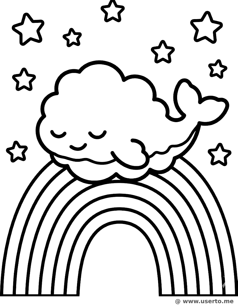 descriptionSchläfriger Wolkenwal auf einem Regenbogen Coloring Page Description