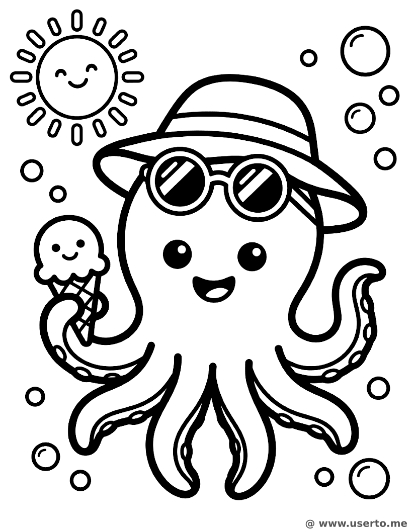 Sonnige Oktopus-Sommerparty - Kostenloses AI Coloring Book: To Me