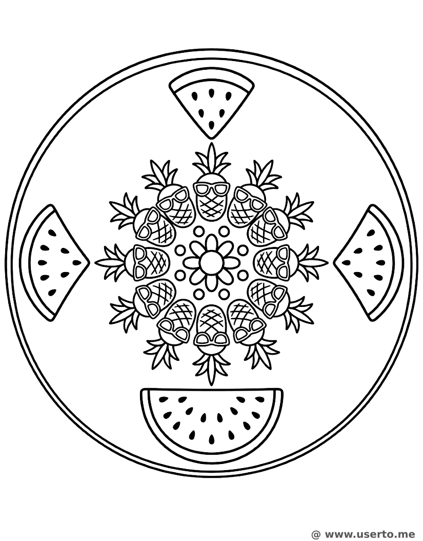 descriptionTanzende Ananas & Wassermelone Coloring Page Description