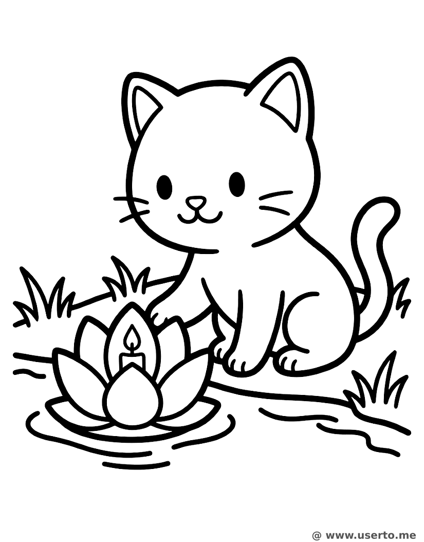 Wünsche des Kätzchens mit Schwimmenden Laternen - Kostenloses AI Coloring Book: To Me