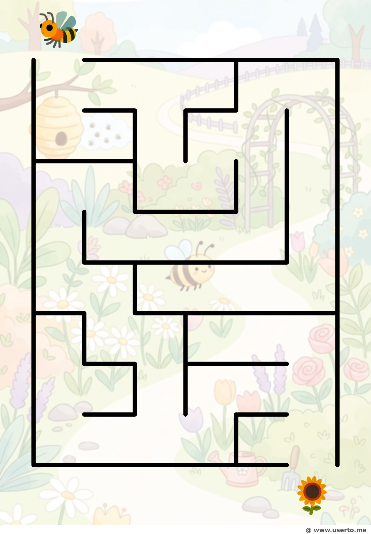 Hilf der kleinen Biene, durch die Gartenwege zu fliegen, um die große Sonnenblume zu erreichen.