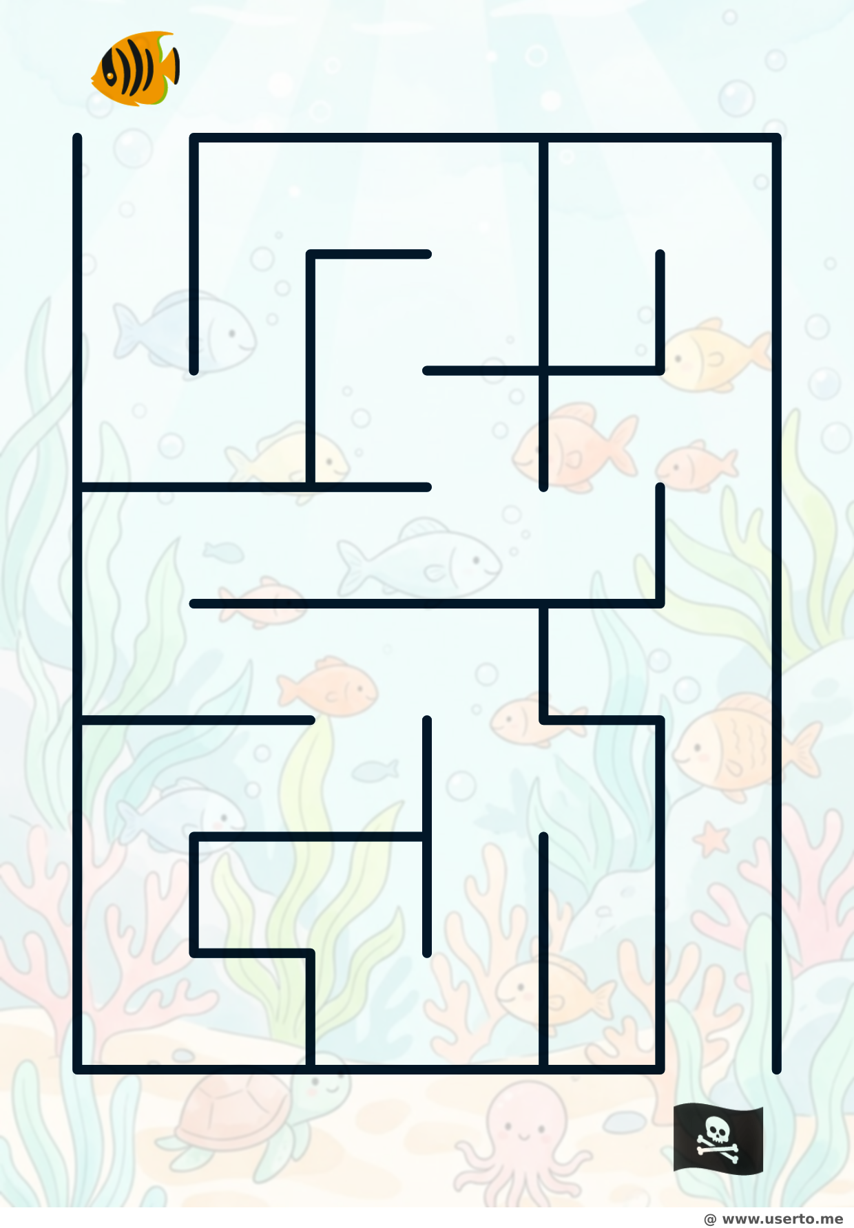 Hilf dem orangefarbenen Fisch, durch die Korallen zur Schatzkiste zu schwimmen.