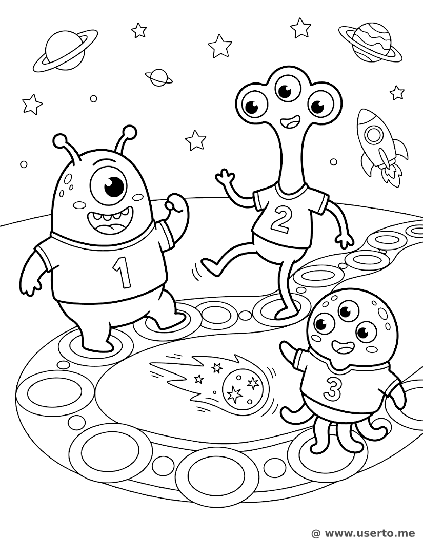 descriptionAlien Soccer on Saturn’s Rings Coloring Page Description