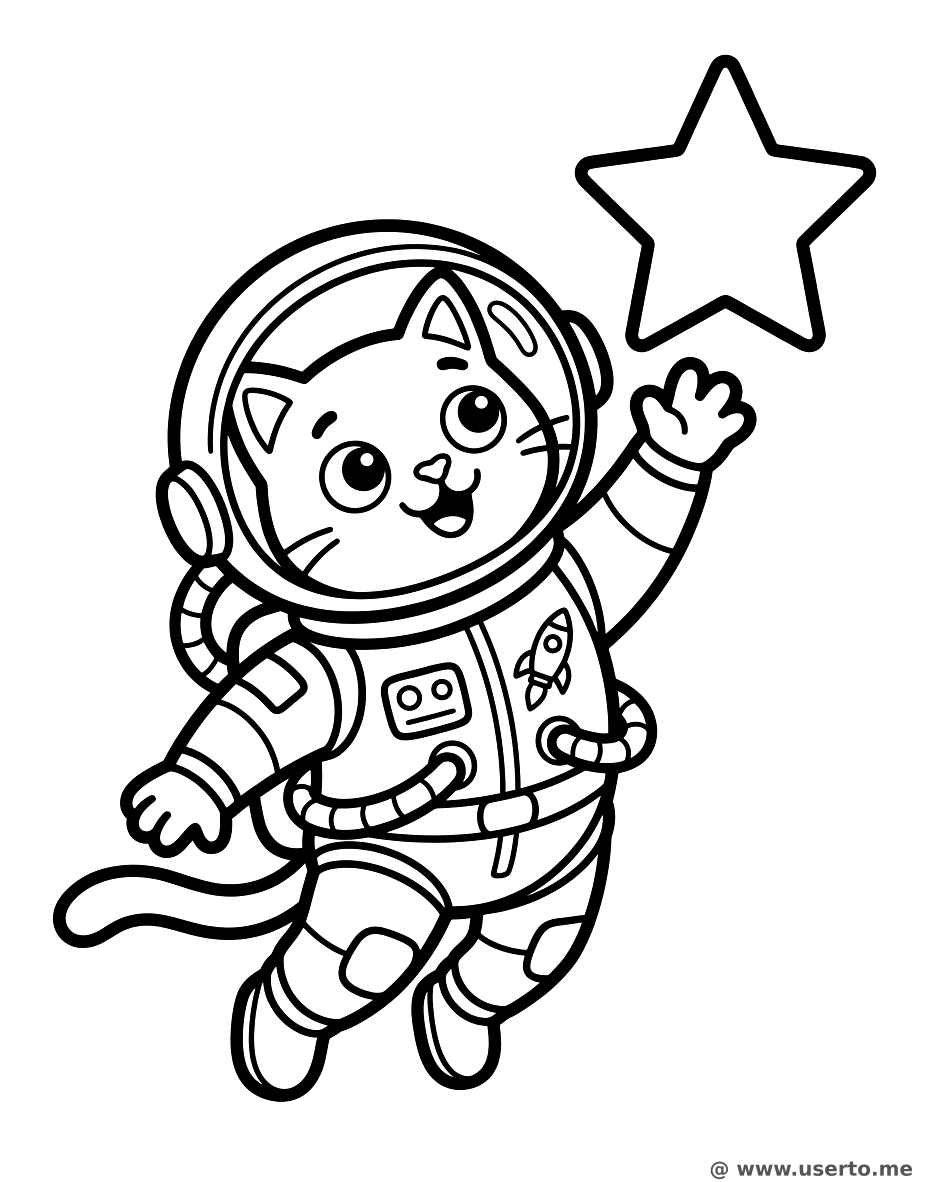 descriptionAstronaut Cat in Space Coloring Page Description