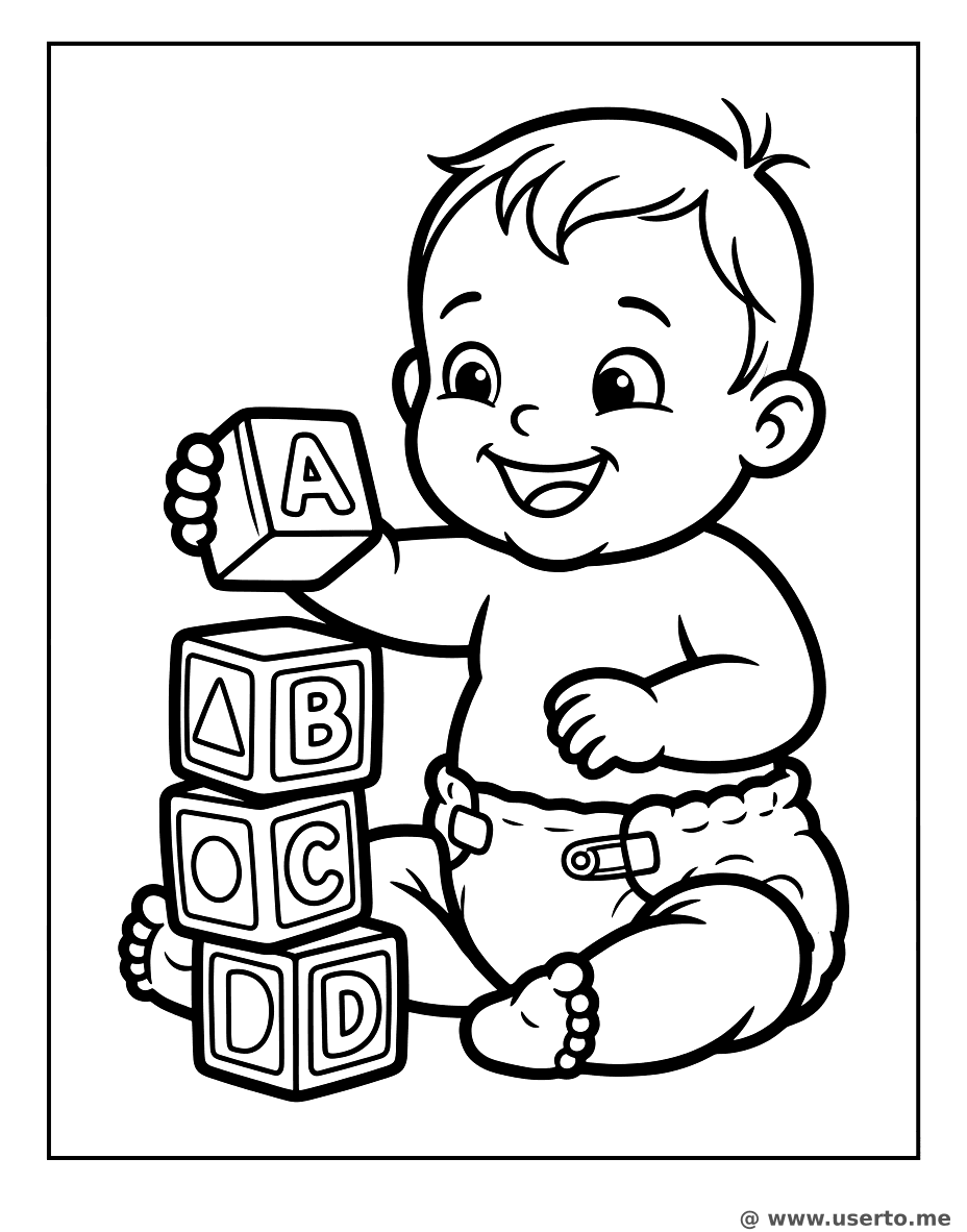 Baby Playing with Blocks - Free AI Coloring Book: To Me