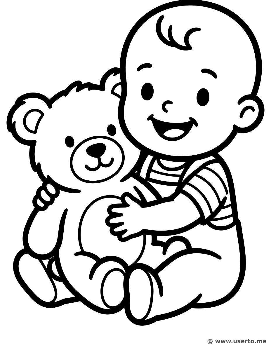 Baby and Teddy Bear - Free AI Coloring Book: To Me