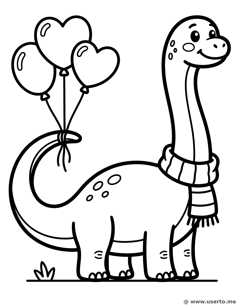 Brachiosaurus Balloon Parade is a popular dinosaur, brachiosaurus, balloons, scarf, friendly themed page in the Dinosaurs category. Print this free AI-generated coloring sheet to help your child develop fine motor skills and creativity. High-resolution image optimized for A4 paper is available for instant download.