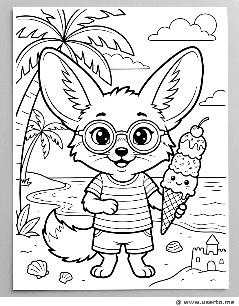 Cool Fennec Fox's Summer Treat - Free AI Coloring Book: To Me