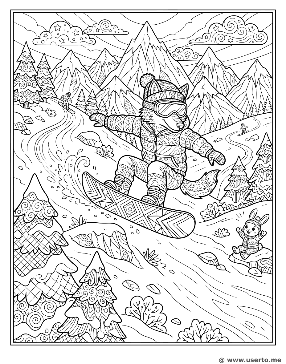 Cool Wolf's Mountain Snowboard - Free AI Coloring Book: To Me