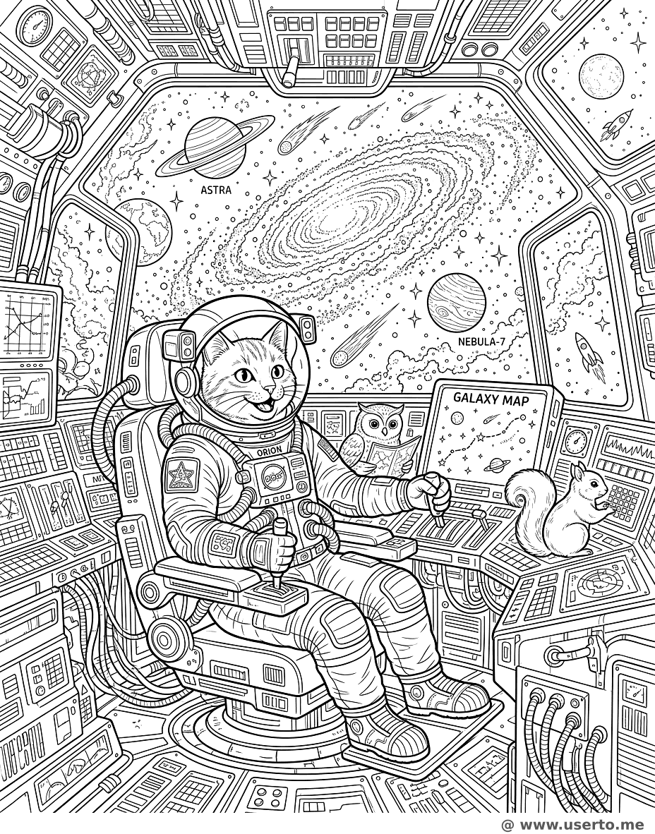 Cosmic Cat Space Explorer - Free AI Coloring Book: To Me