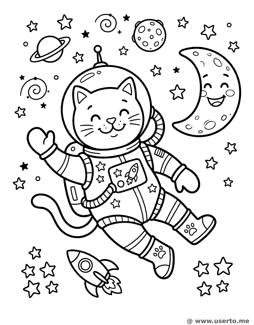 Discover the Cosmic Kitty's Moon Nap coloring page, exclusively designed around the fascinating Cute Characters theme. Featuring cat, astronaut, space, moon, stars, this high-resolution printable coloring sheet is completely free and optimized for standard A4 paper. Using our AI-generated illustrations, children can enjoy hours of creative fun while naturally developing fine motor skills, hand-eye coordination, and color recognition. Perfect for parents and teachers looking for engaging homeschooling activities, our pages encourage focused attention. Download and print this beautiful artwork right now to provide an educational activity that boosts cognitive development.