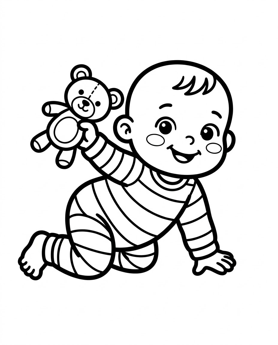 Cute Baby and Teddy is a popular baby, teddy bear, family, cute, simple themed page in the People & Family category. Print this free AI-generated coloring sheet to help your child develop fine motor skills and creativity. High-resolution image optimized for A4 paper is available for instant download.