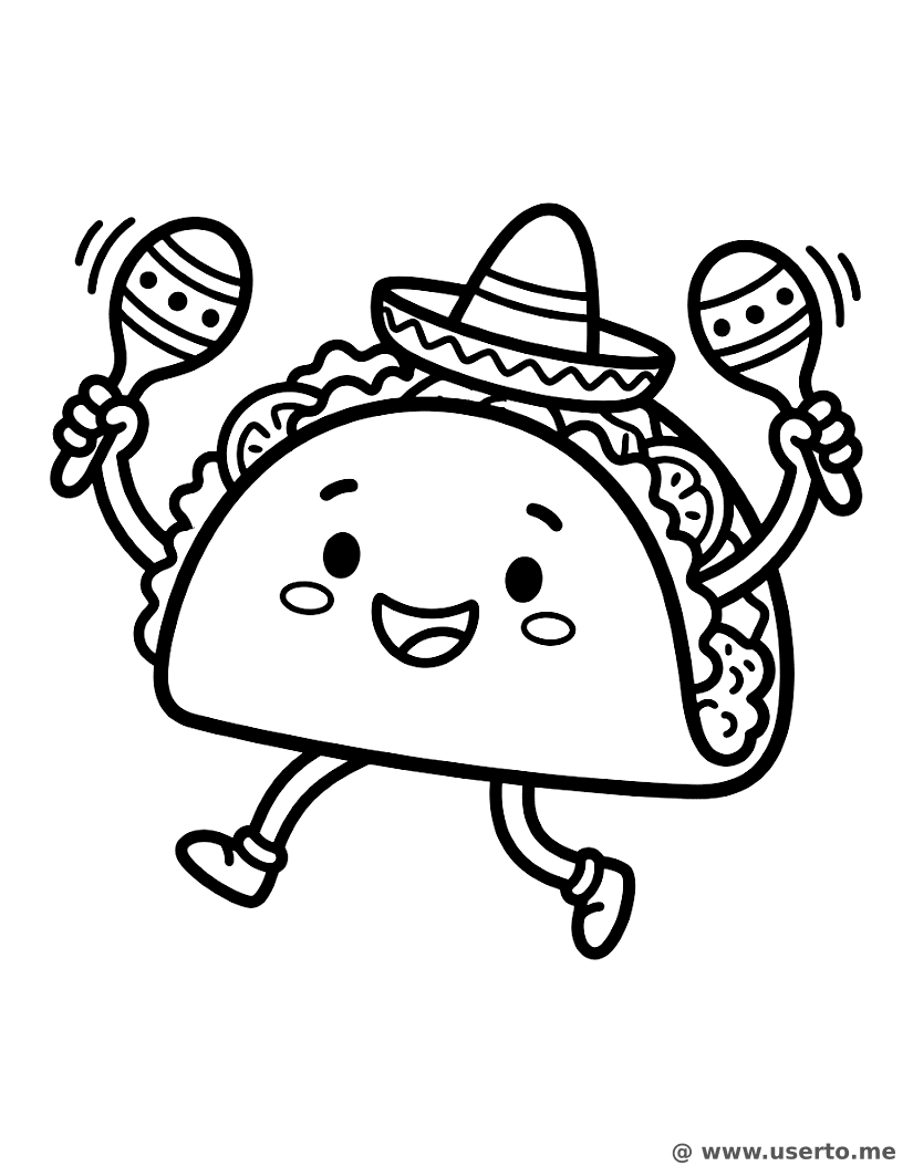 descriptionDancing Taco Fiesta Coloring Page Description