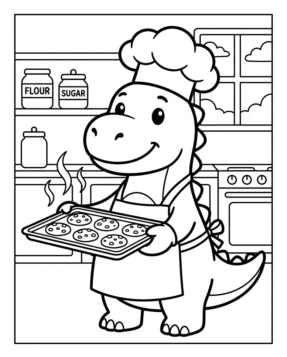 Dinosaur Baker Baking - Free AI Coloring Book: To Me