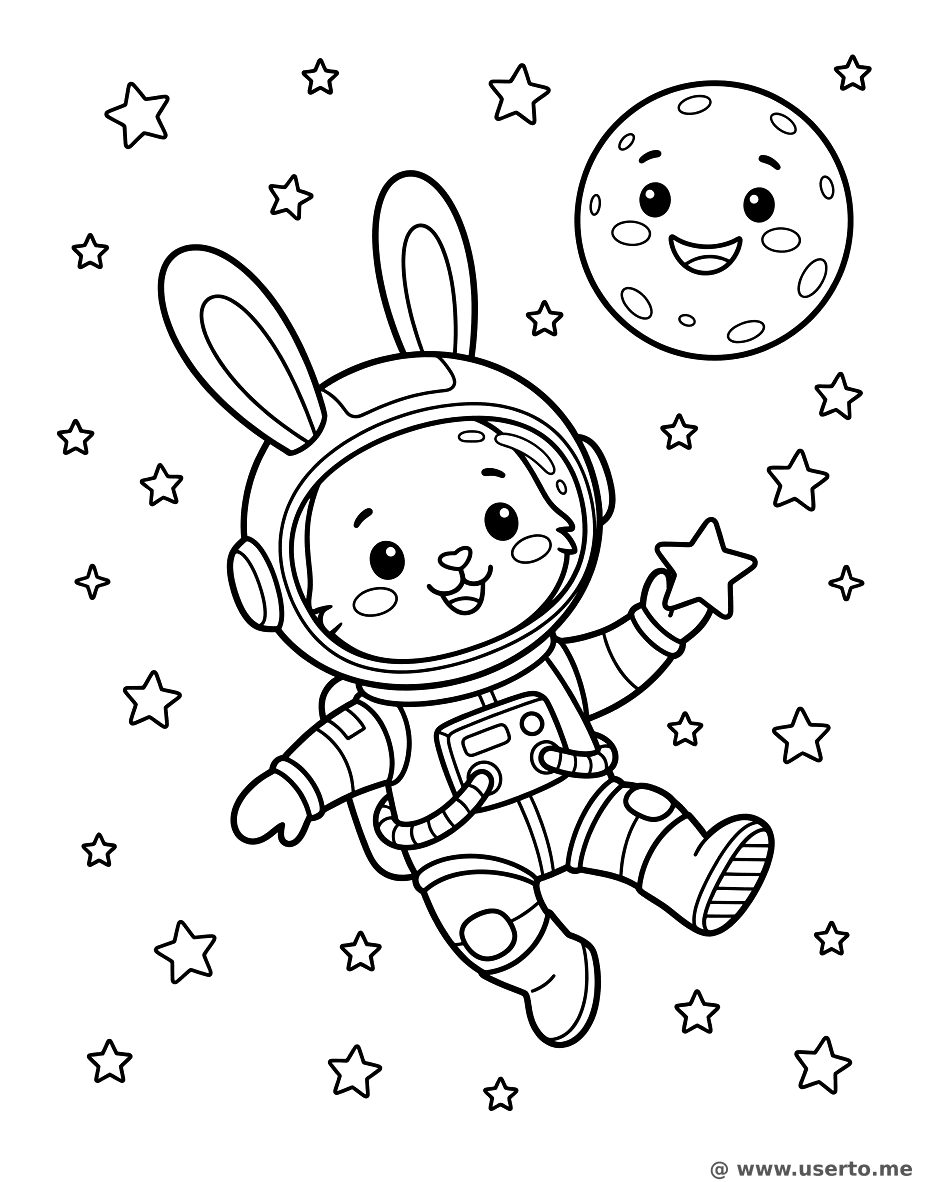 descriptionDreaming Bunny Astronaut Coloring Page Description