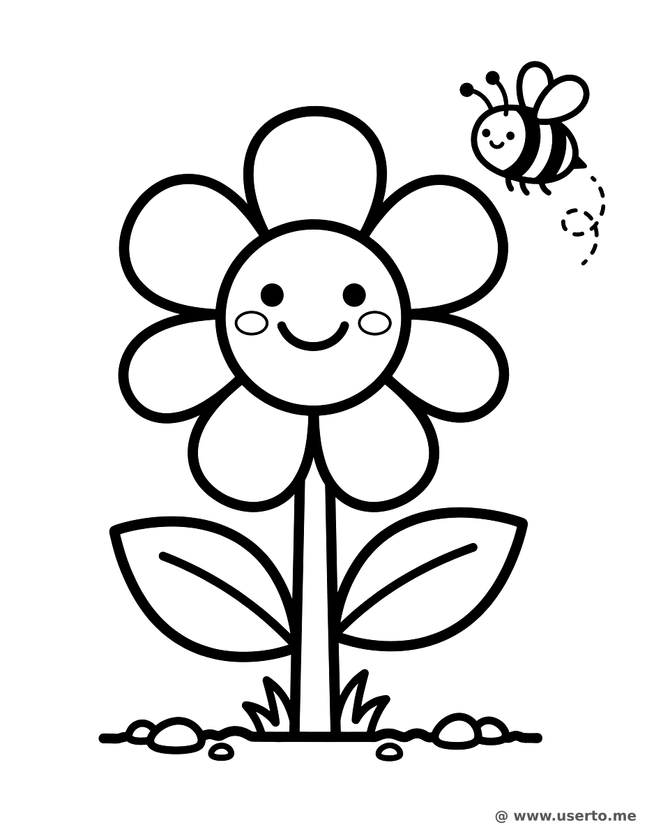 descriptionFriendly Flower and Dancing Bee Coloring Page Description