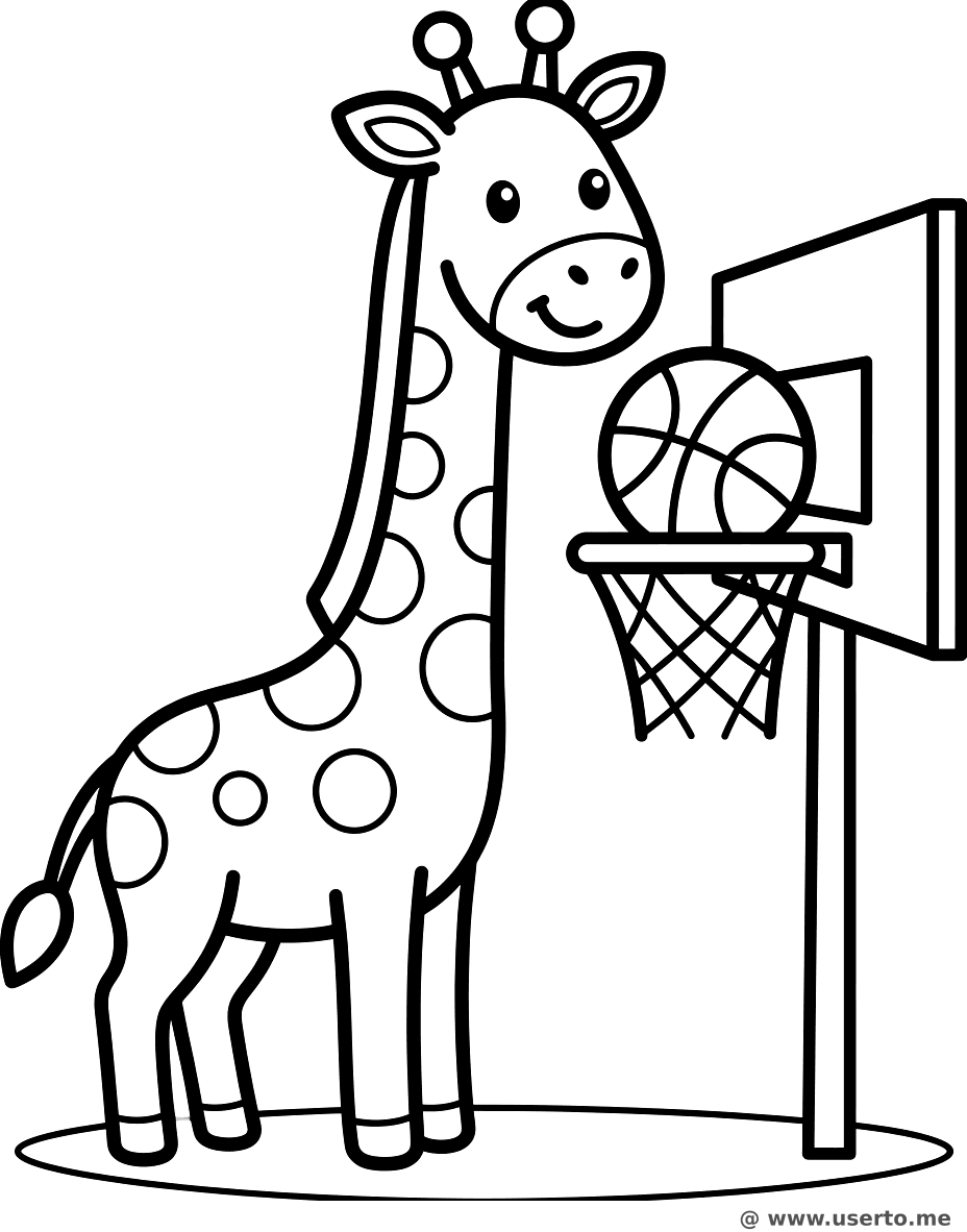 descriptionFriendly Giraffe Scores a Basket Coloring Page Description