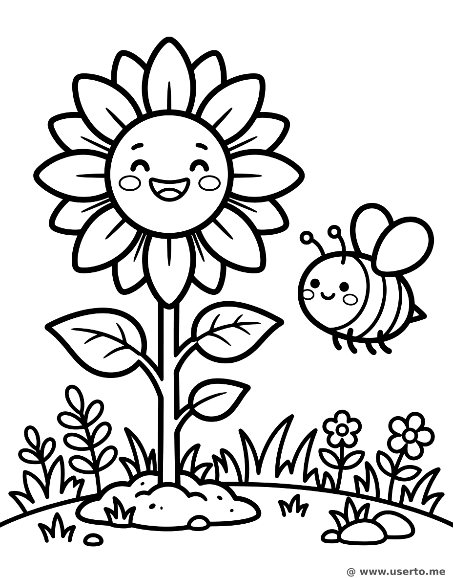 Giggling Flower and Busy Bee - Free AI Coloring Book: To Me