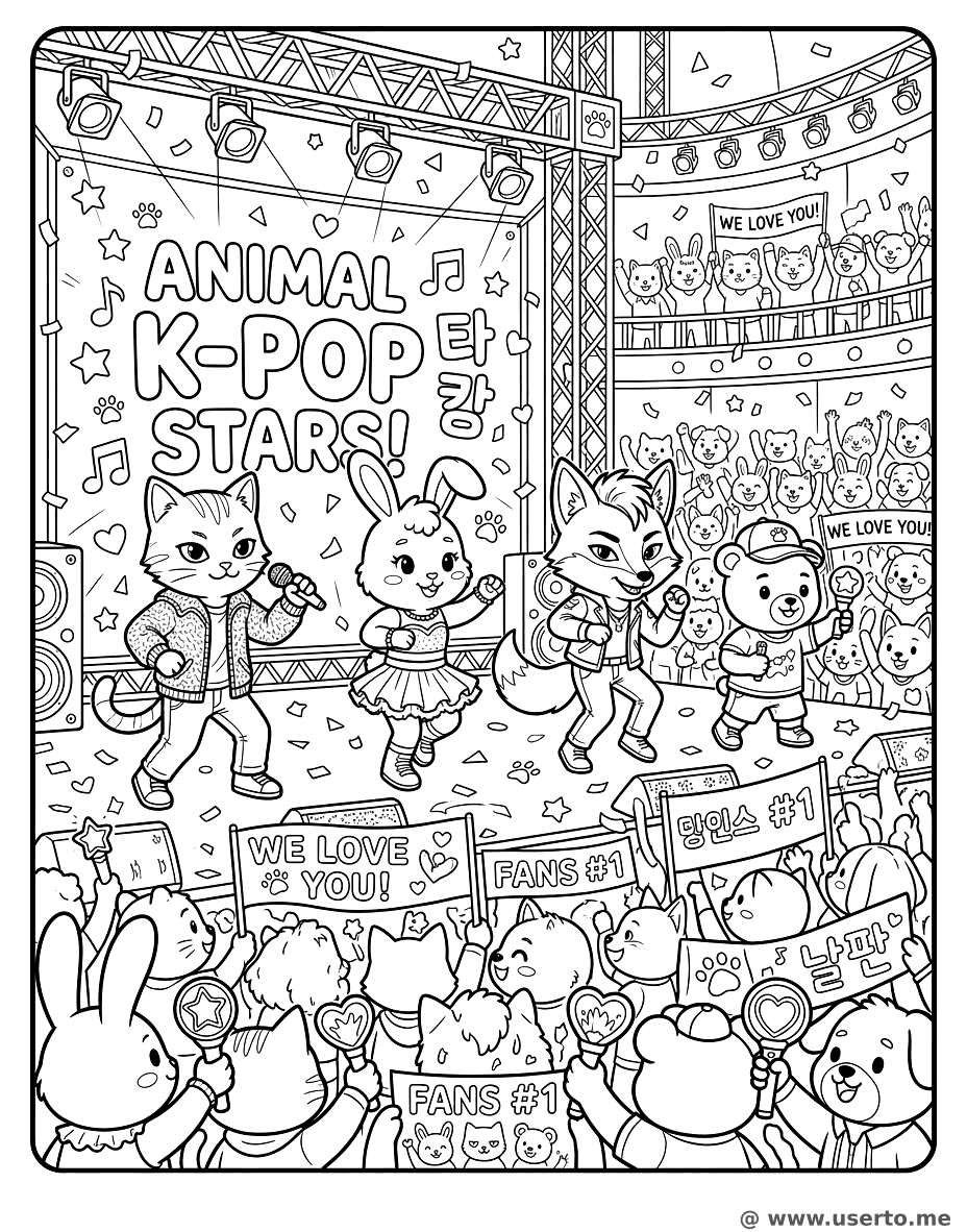 K-Pop Animal Concert - Free AI Coloring Book: To Me