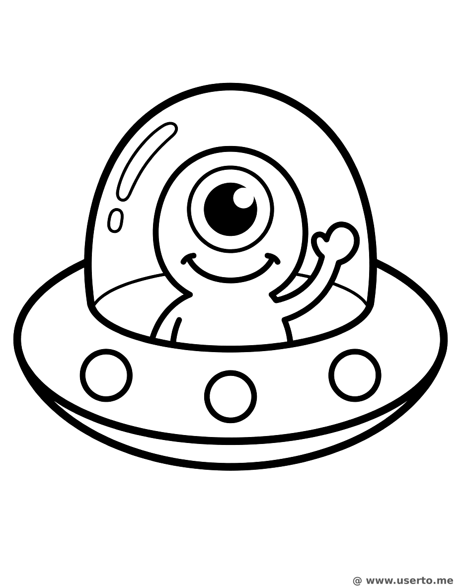 descriptionLittle Alien's Flying Saucer Coloring Page Description
