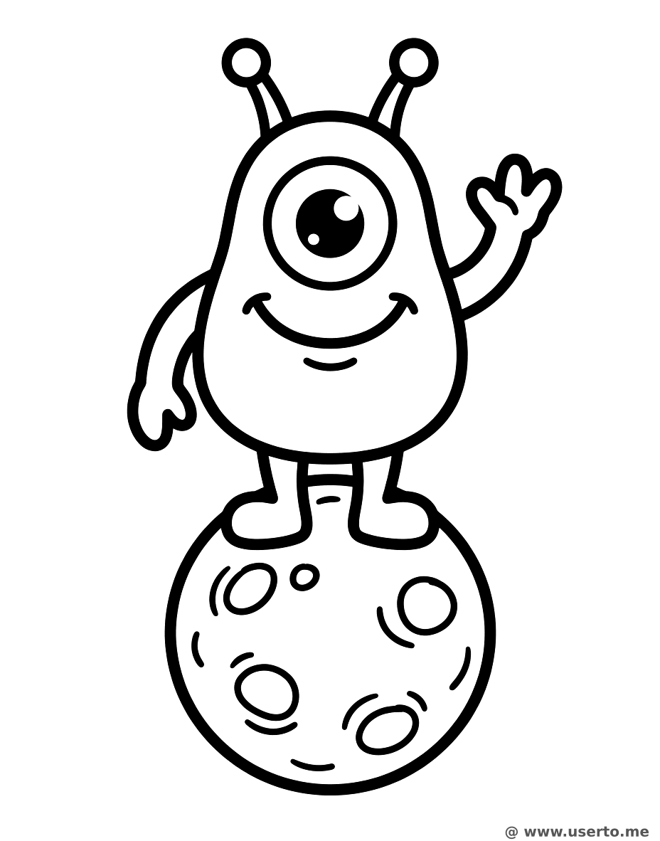 descriptionLittle Alien's Friendly Wave Coloring Page Description
