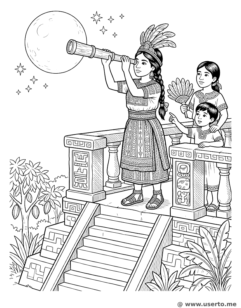 Mayan Star-Mapper Princess - Free AI Coloring Book: To Me