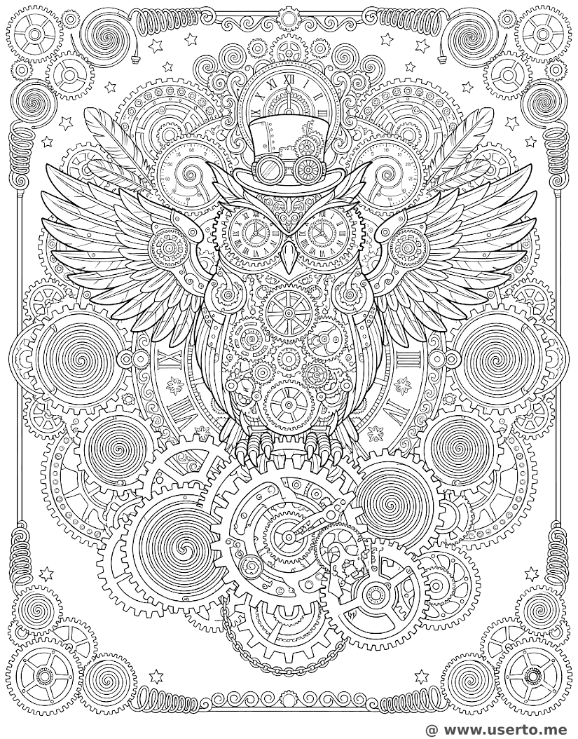 Midnight Owl Clockwork Mandala - Free AI Coloring Book: To Me