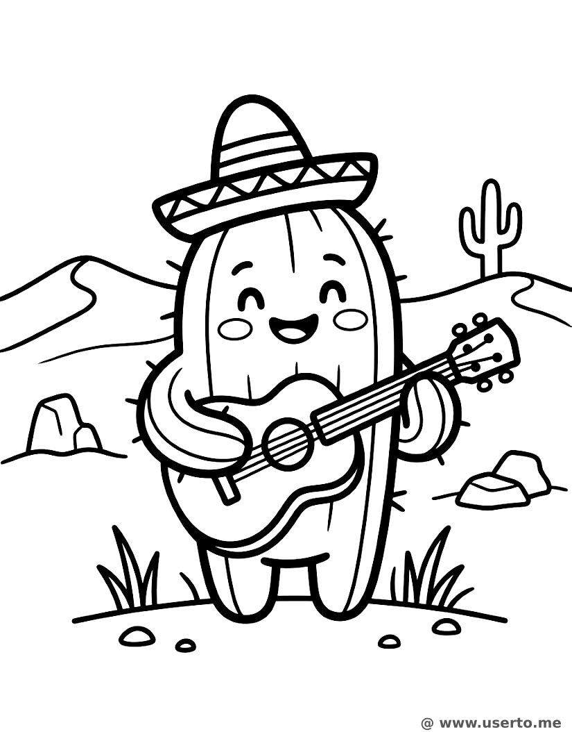 Musical Desert Cactus - Free AI Coloring Book: To Me